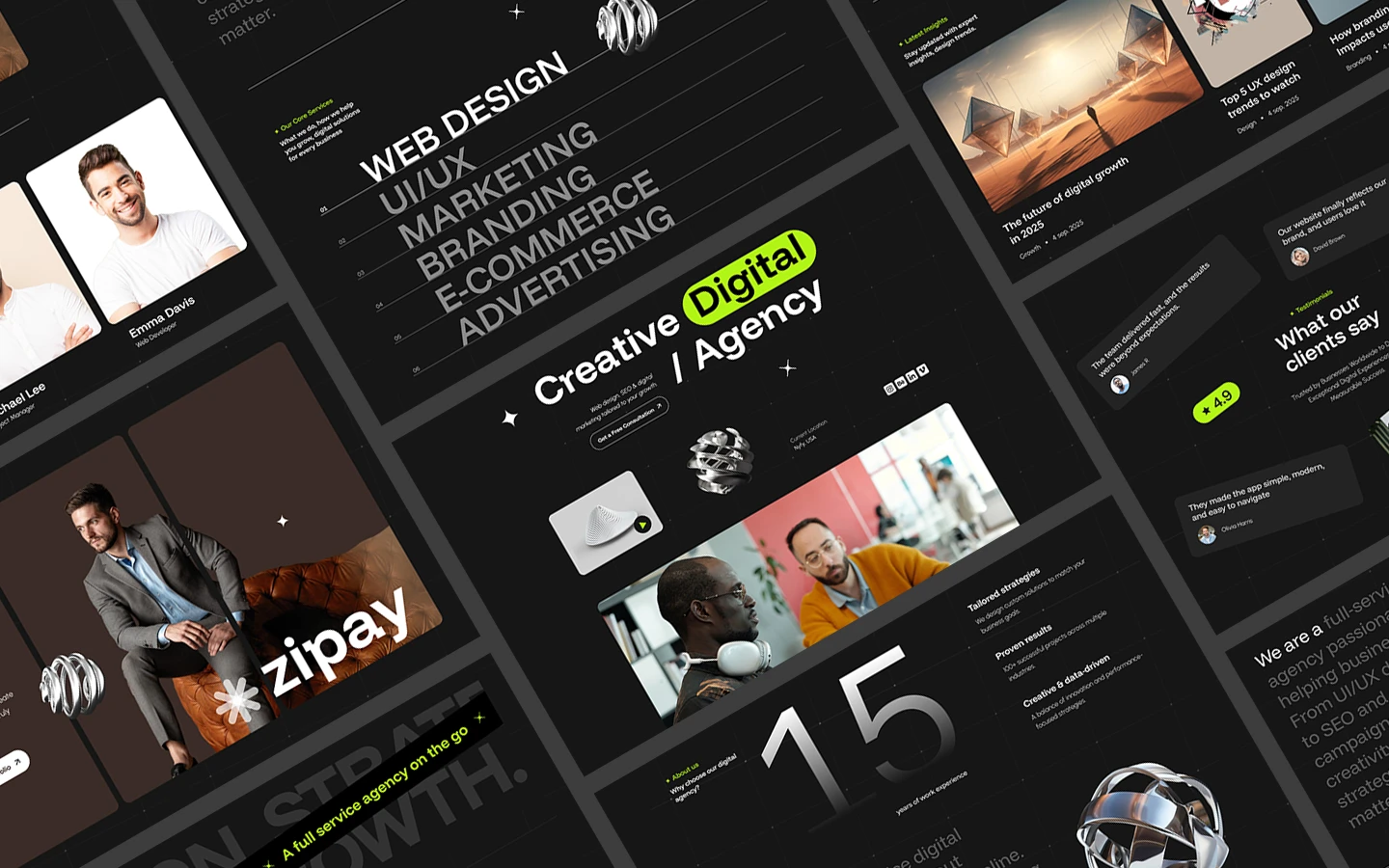 Whether you’re showcasing creative work, promoting marketing services, or building trust with clients, Zipay gives you everything you need to create a professional, modern, and visually impressive website for your agency.