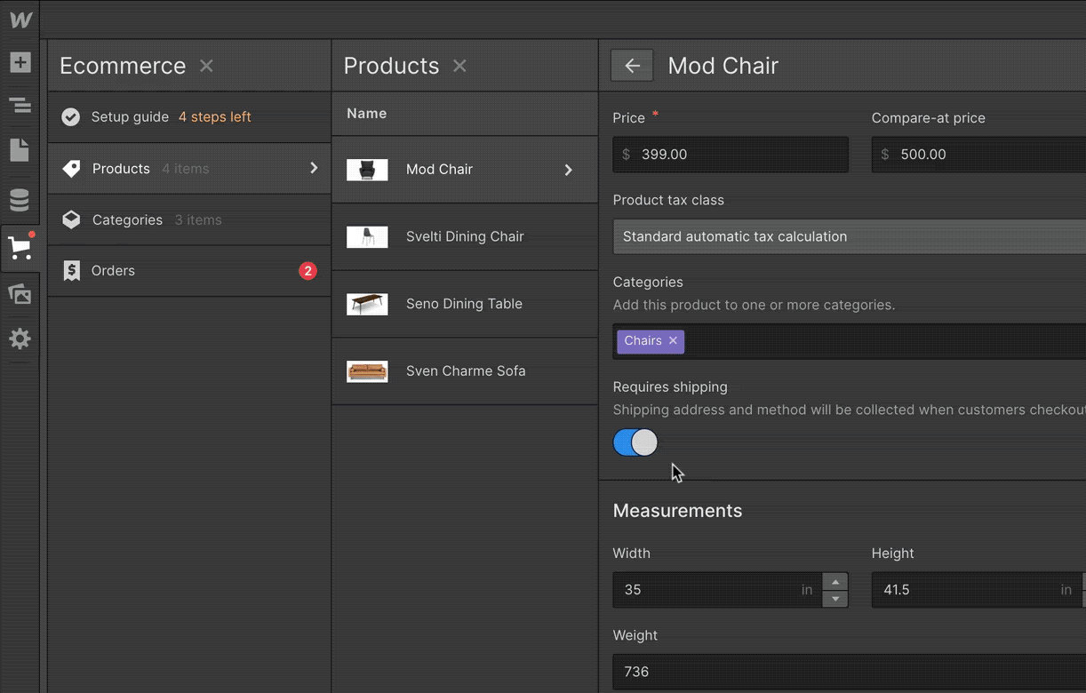 Late last year we launched the ability to indicate whether or not a product requires shipping through a toggle on each product detail page. You can now set conditional visibility based on that same toggle to create unique designs for products that do or don’t require shipping!