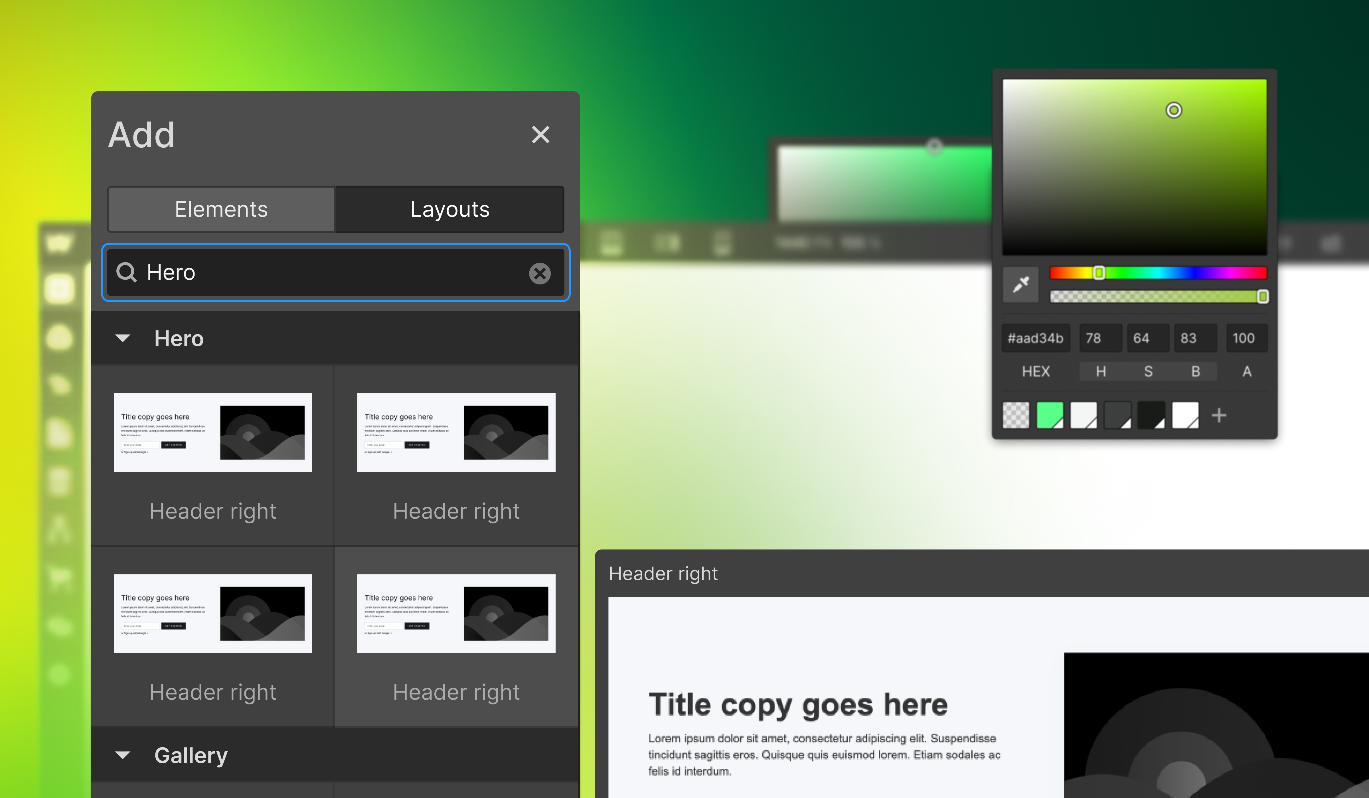 You can now view an enlarged preview of a layout before adding it to your canvas by hovering over the layout in the Add panel.