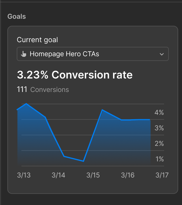 Getting set up is easy; simply select any clickable element in the Designer — like buttons or links — to define a goal. Then, track clicks across multiple pages or variants in one go. Rename, edit, or delete goals anytime — no need to start from scratch if your strategy shifts.