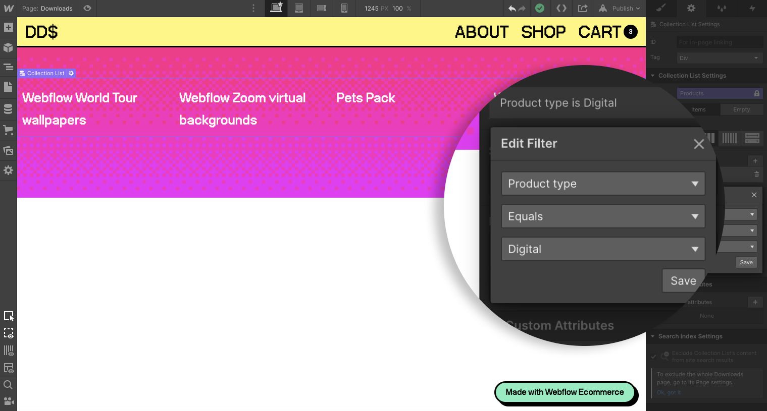 Earlier this year, we announced the ability to add downloadable links to your Ecommerce products. Courses, fonts, stock photos, music — the digital world is your oyster. Today we share Webflow’s Digital Dollar Store: our own way of showcasing how Webflow Ecommerce can support all types of immensely creative digital stores. And yes, you guessed it: all of our silly (but awesome) products are just one US dollar.