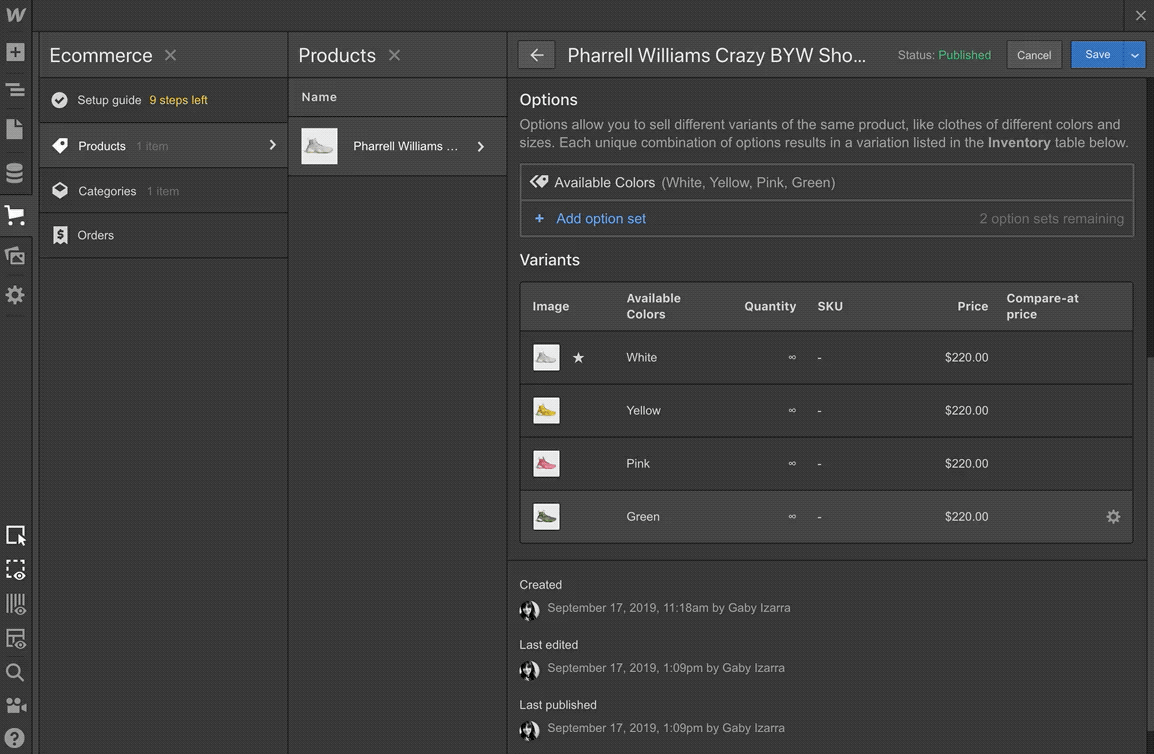 Give each product color, size, model (and any other variant in your inventory) the limelight it deserves. Using the new default “More Images” field, you can upload a unique set of images for each product variant.