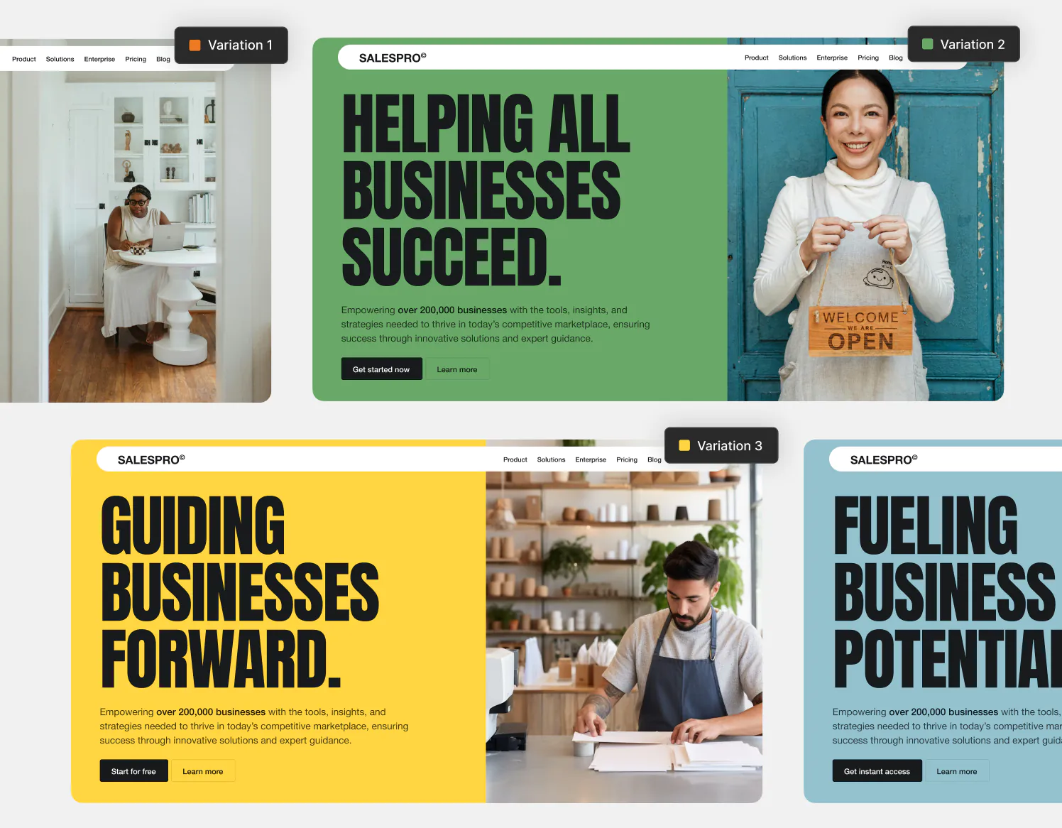 Yes. Webflow Optimize supports a range of experimentation approaches, including A/B testing, multivariate testing, and split-page tests using URL redirects. Teams can run visual experiments with flexible targeting and reliable measurement, making it possible to test everything from layout and content changes to full-page experiences across different audiences.