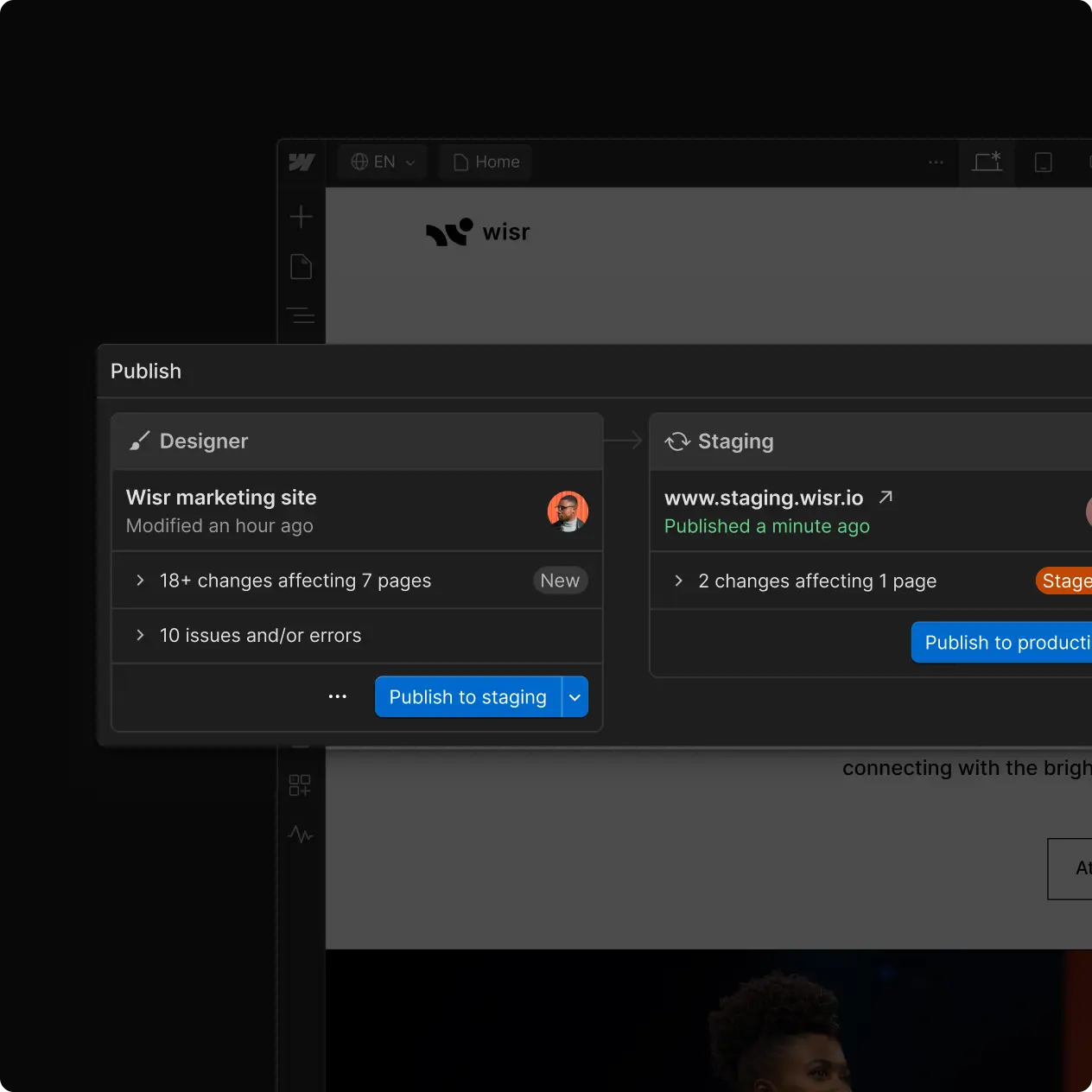 While VWO offers a complete optimization solution, Webflow is something fundamentally different: an agentic web marketing platform — purpose built for growth. When optimization lives where your site is built and managed, teams move faster to launch experiments and ship to production, without rebuilding pages or the usual back-and-forth.