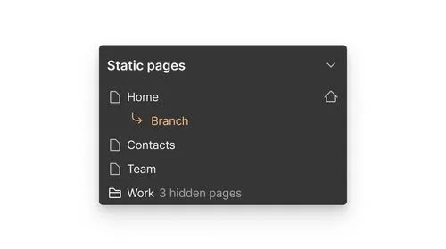 Webflow’s page branching focuses the scope of a branch on individual pages, rather than the full-site. This means when you branch a page, you take a “snapshot” of one of the pages on your site, which lets you safely explore new design changes without affecting the original page or the rest of the site.