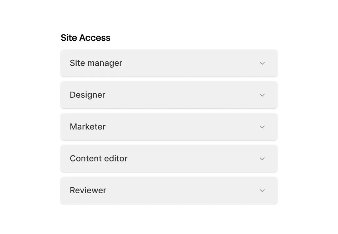 If you’re a Webflow Enterprise customer, you can also create tailor-made roles to fit your team’s needs. You start with a base role (like Designer or content editor) and toggle configurable permissions on or off based on what a person actually needs to do. There are hundreds of combinations possible (more details here), but here are a few of the most common custom roles that we’ve seen Webflow customers creating: