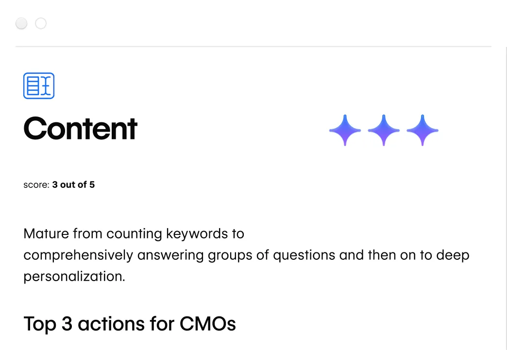 Get a personalized report in minutes to see how optimized your site is for AI-driven discovery.
