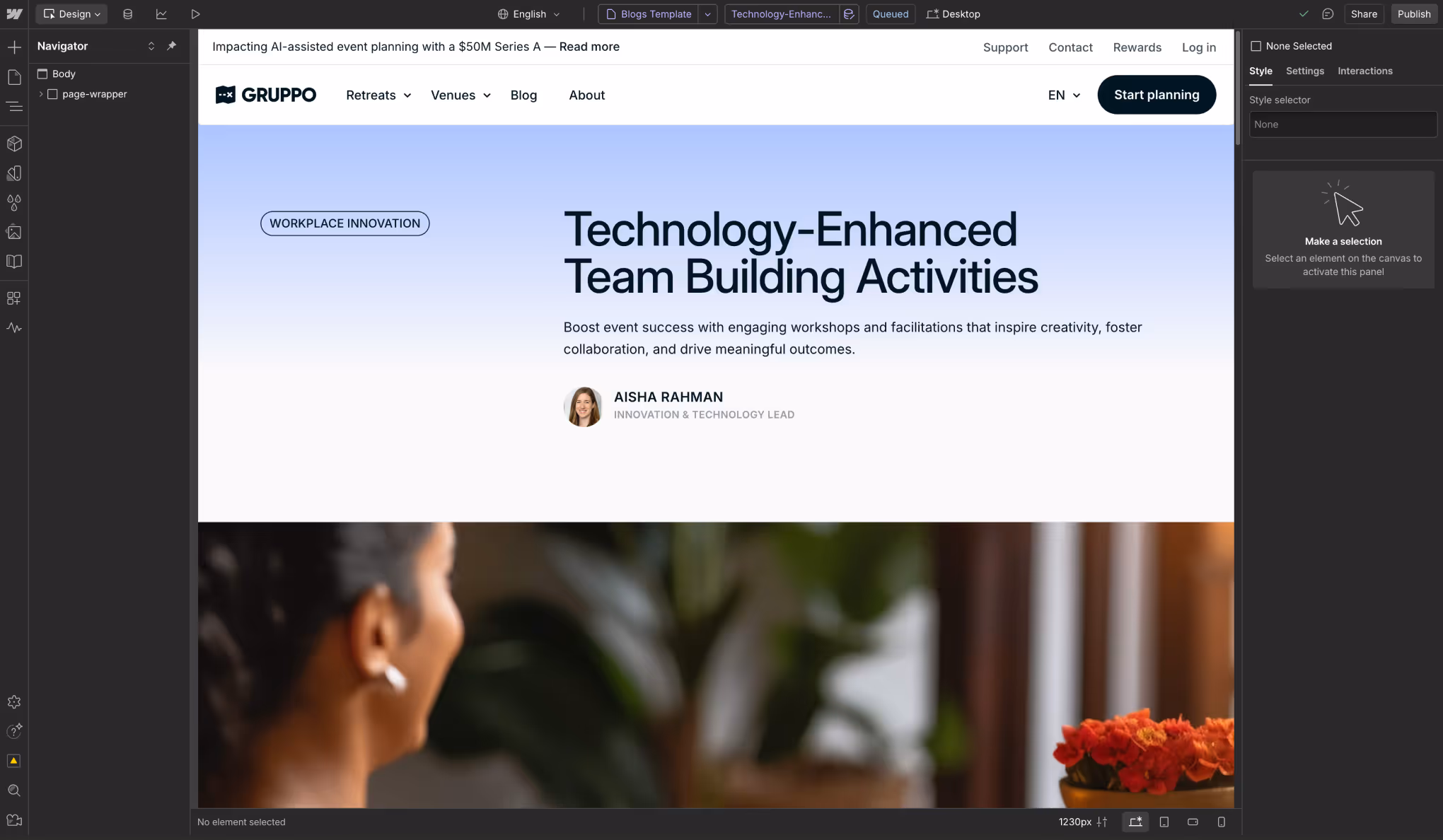 Create dynamic pages (e.g., blog posts, product pages, team member profiles) by adding entries to the CMS without designing each one manually.
